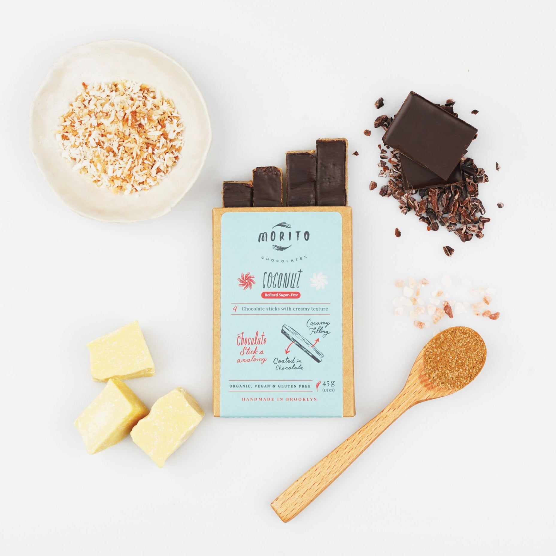 COCONUT: This refined sugar-free chocolate stick has a white vegan chocolate center, covered in our 100% dark chocolate for a perfectly balanced flavor with a unique and delicate taste, incredibly creamy and luscious texture that finishes with the subtle notes of cream and freshness.
